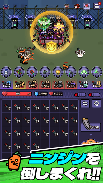 大変!怪しいポーションによって「ゾンビ化」したニンジンたちが、ラビットタウンの平和を脅かしています! 村を守るために武器を持って立ち上がるラビットタウンの住人たち。 「ミッション:ゾンビ化したニンジンたちを治療(物理)し、村を守れ!」 ▶放置でカンタン育成 - 放置しておくだけで、驚くほどサクサク育成! ▶多彩なキャラクターとステージ - ラビットタウンの仲間と一緒に、いろんなステージを冒険しよう! ▶強力な武器・爽快なアクション - 武器を合わせて強化して、ド派手なスキルで敵を一掃! - お問い合わせ先:mr@gameduo.net - プライバシーポリシー:https://gameduo.net/ja/privacy-policy - サービス利用規約:https://gameduo.net/ja/terms-of-serviceマッドラビット:放置系RPGのダウンロード